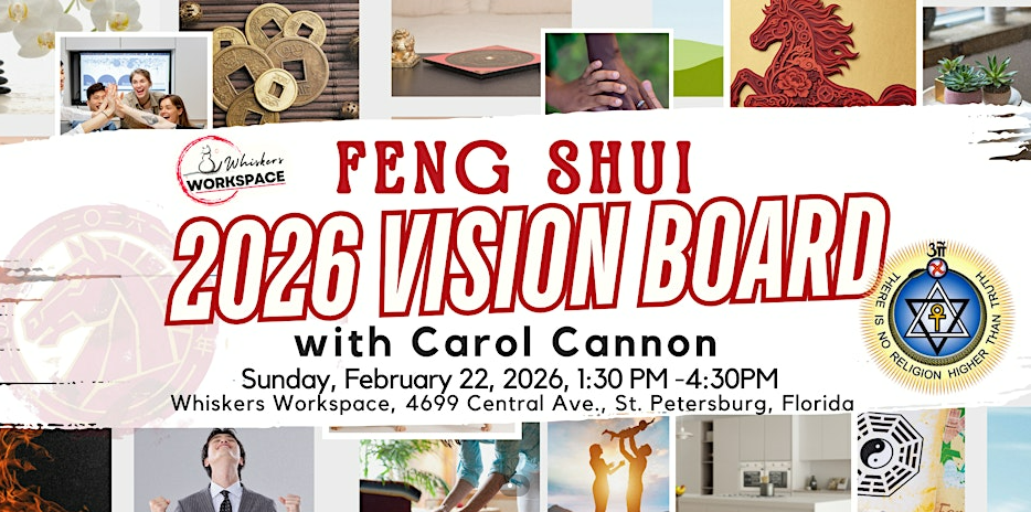 Welcome the Year of the Fire Horse with clarity and intention! Join Carol Cannon on Feb 22, 2026 | 1:30–4:30 PM at Whiskers Workspace for a powerful Feng Shui Vision Board class designed to align your goals with the energy of the year ahead.